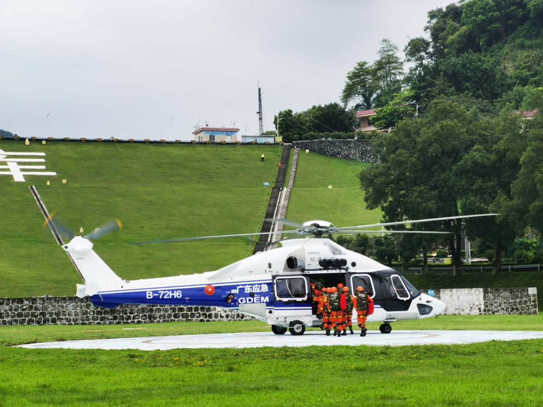 为应对突发灾害与紧急救援需求,锻造应急航空“空中尖兵”救援力量,提升复杂环境下的应急处置能力,近日,广东省防灾减灾中心以“实战化、高效化”为导向,在广州市黄埔区应急管理局协同下于金坑水库旁开展 H175直升机单侧双人索降应急救援演练。此次演练模拟极端条件下的救援场景,检验应急响应能力,锻造“空中生命线”,展现科技与勇气交织的救援力量。